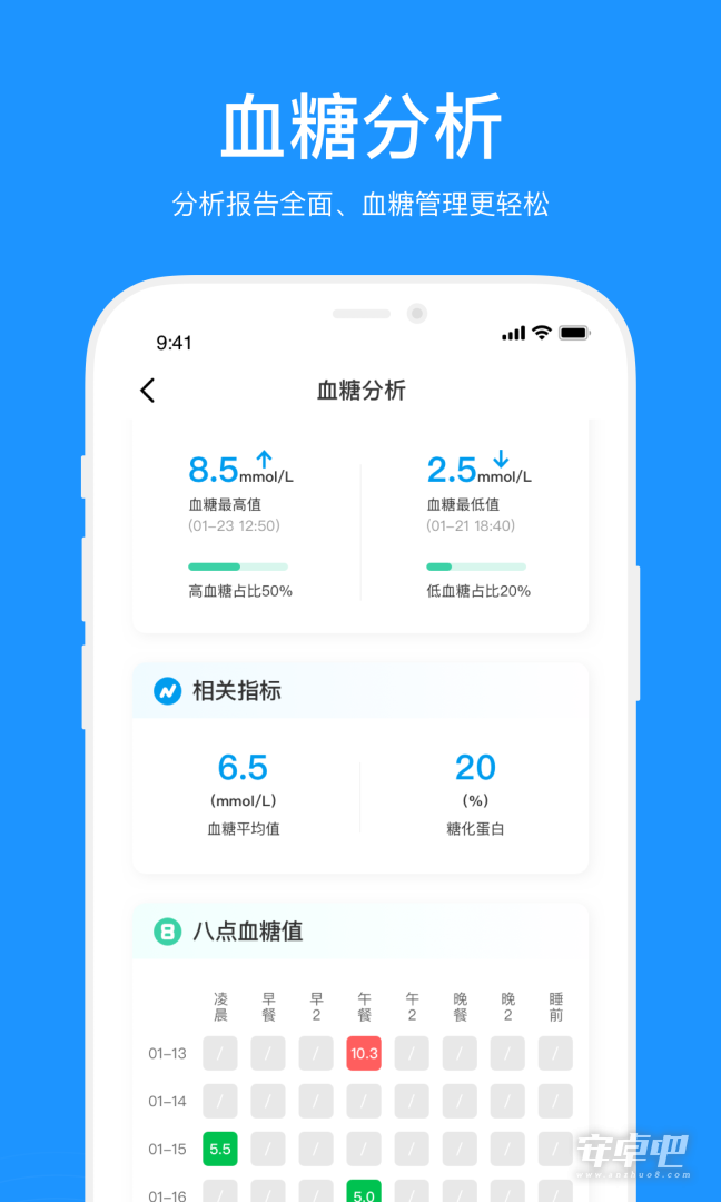 2.血糖分析:分析报告全面、血糖管理更轻松;