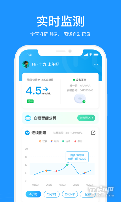3、可以实时查看自己的血糖信息,来接自己的身体血糖情况