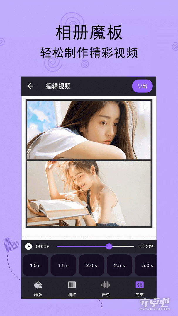可以配上美妙的音乐,加上炫酷的滤镜贴纸,让照片变精彩视频。