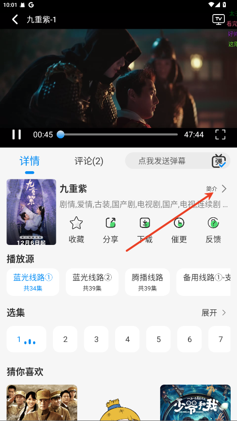 进入详情页,查看剧情简介、演员表、更新记录等信息。
