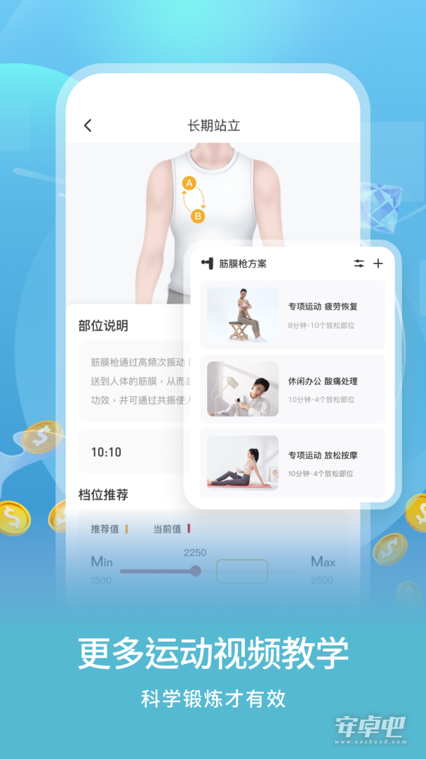 2、本软件给用户提供的非常全面的教学视频,帮助用户使用筋膜枪缓解生活健身当中的鸡肉疲劳疼痛,跟随视频方便实用