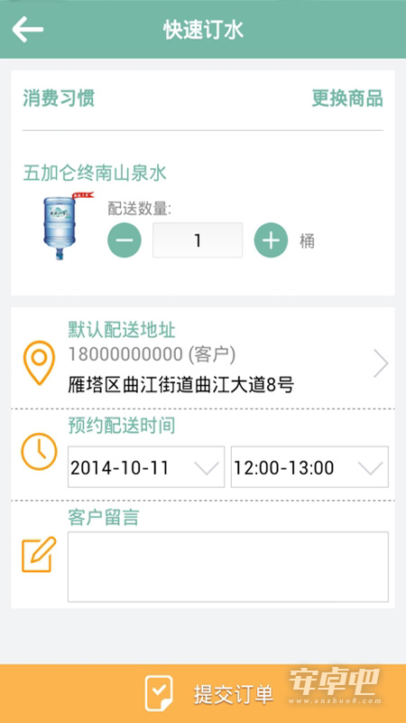 2、随时随地预订本公司桶装水,并可查看配送状态