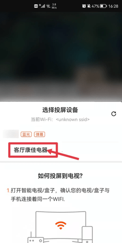 第三步在投屏中找到可以投屏的【康佳电视】并点击连接就可以投屏了