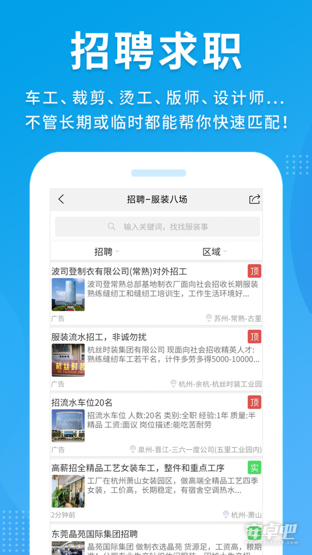 2、服装八场以服装批发、服装加工为核心服务产业的平台应用,你在上面既可以发布、也能够购买,有点类似于闲鱼,不过它的体量更大、专业更强,针对许多工厂生产以及招聘,都有很好的渠道推广与帮助,推荐