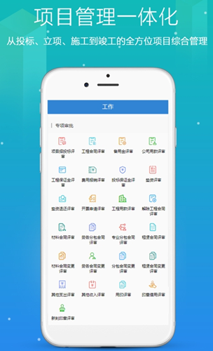 1.筑企宝app为用户提供的移动办公功能是十分智能的,用户可以在线的对于事项的请求、审批进行管理,为用户带来了十分好的线上办公的体验。