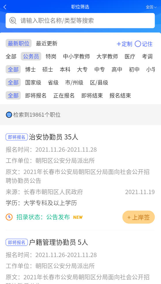 夺岸公考资讯平台app这个是一款专业为我们公务员考试所打造的一款资讯平台,用户是可以在这个软件里面根据自身的一个区域 进行一些招录信息的查询,还可以在上面去看到很多的职位参考信息,帮助我们在上面是可以快速的去选择一个职业,需要的是可以下载去里面看看的。